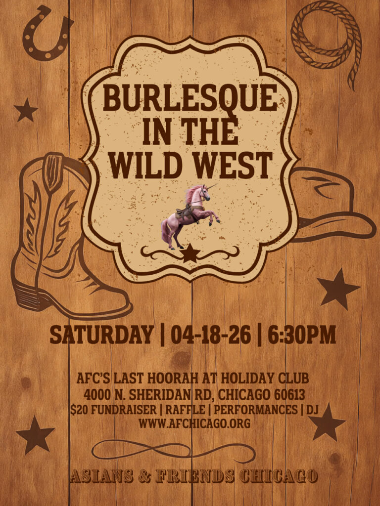It’s time to put on your cowboy boots, cowboy hat or country attire. Encouraged but not mandatory. This is our annual fundraiser to finalize and pay for our Asians & Friends Chicago Pride Parade Float. This year’s theme is Chinese Zodiac. Only $20 per person!